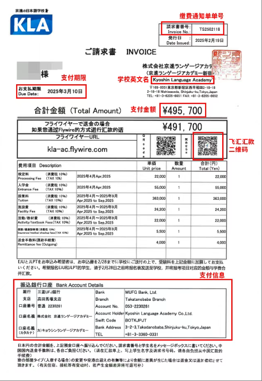 因为会出现汇款失败的案例,所以建议按照《学费请求书》内容, 自己手动输入,并确认内容。Step 06. 按照《学费请求书》指示,输入需要缴纳的学费(日元)